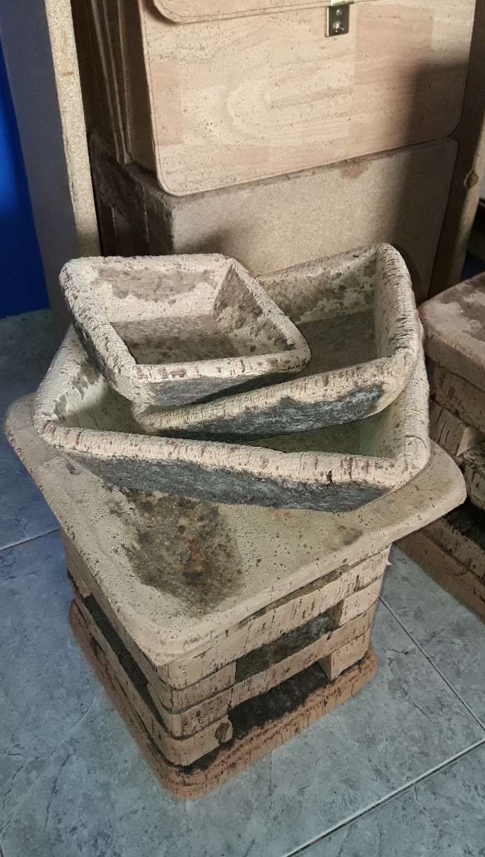 La segunda jornada la dedicamos íntegramente a esculpir un jarrón de corcho. Para llegar hasta él, Miguel nos descubrió la importancia de un buen diseño previo. Una vez claro éste, nos pusimos manos a la obra y recortamos con las seguetas tantos anillos -de 1 cm de espesor y diferentes radios- como fueron necesarios para componer nuestra pieza. Con ayuda de la cola de contacto y la visión espacial de cada cual, armamos la estructura del jarrón. Finalmente la escofina y el papel de lija, unidos a una buena dosis de paciencia, nos permitió llegar hasta el resultado esperado.
