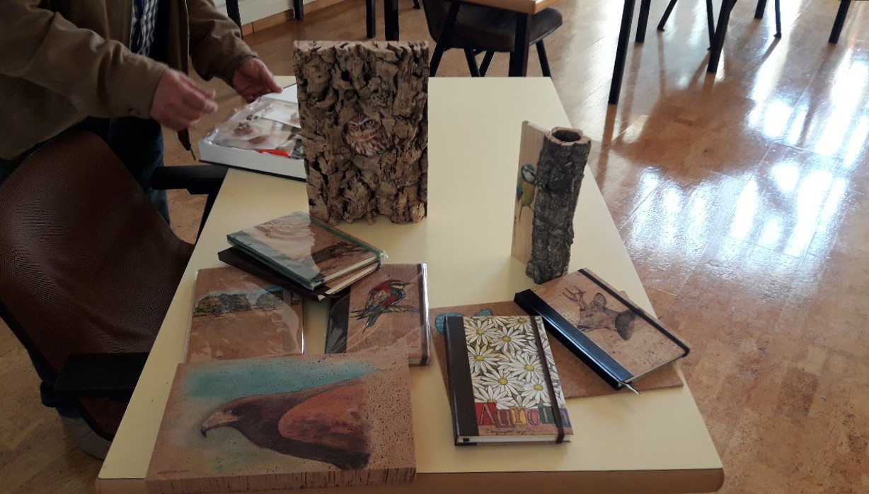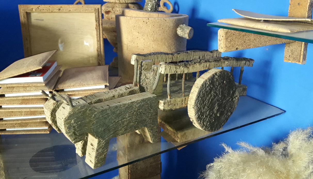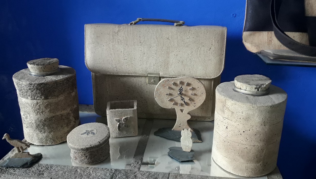 «La mayoría de los productos los diseñamos y elaboramos nosotros mismos o artesanos de la localidad, fomentando con ello el arraigo en la población, manteniendo así oficios artesanales, buscando nuevos usos para este material tan polivalente y favoreciendo la economía circular del corcho.«