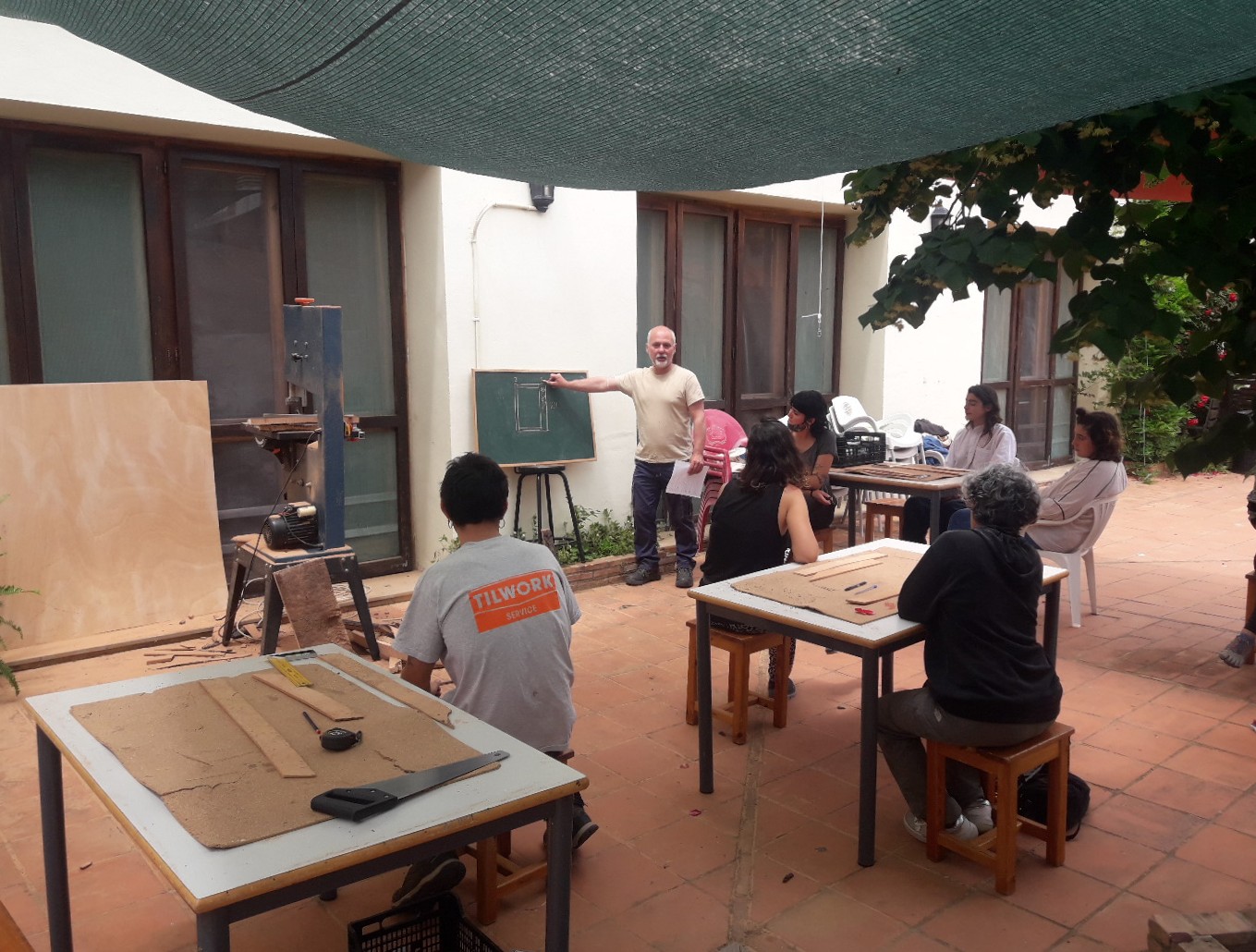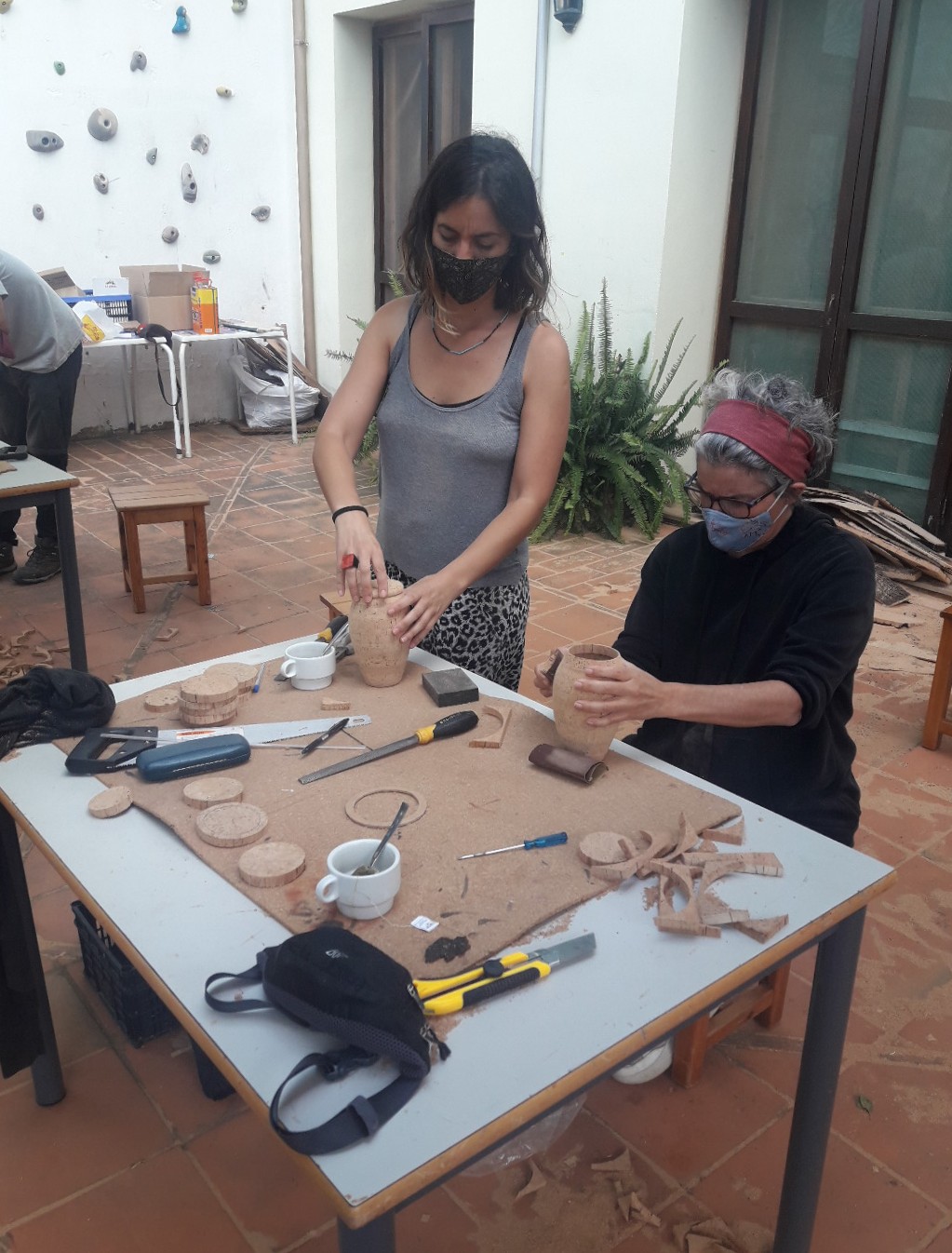 Durante el tercer y último día, con los/as aprendices ya inmersos/as en su rutina semanal, Miguel se dedicó a asesorarnos algunos aspectos a tener en cuenta para futuras fases del proyecto. En concreto nos habló de su experiencia como miembro de la Asociación Extremeña para la Promoción de la Artesanía, de los diferentes calibres, calidades y precios del corcho virgen, de los factores a tener en cuenta a la hora de aceptar encargos, de la importancia de un buen análisis de costo-beneficio, de las diferentes formas de comercialización y sus peculiaridades, etc. En definitiva, toda una master-class en la que tuvimos la oportunidad de profundizar en los temas tratados durante la primera jornada.